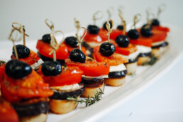 In kleinen Gläschen, am Spießchen, im Holzbasket, in Palmblättern oder direkt fein und mini von der Hand in den Mund. Die Lust auf Mehr wird angeregt. Eine kleine, leckere Basis ist geschaffen.