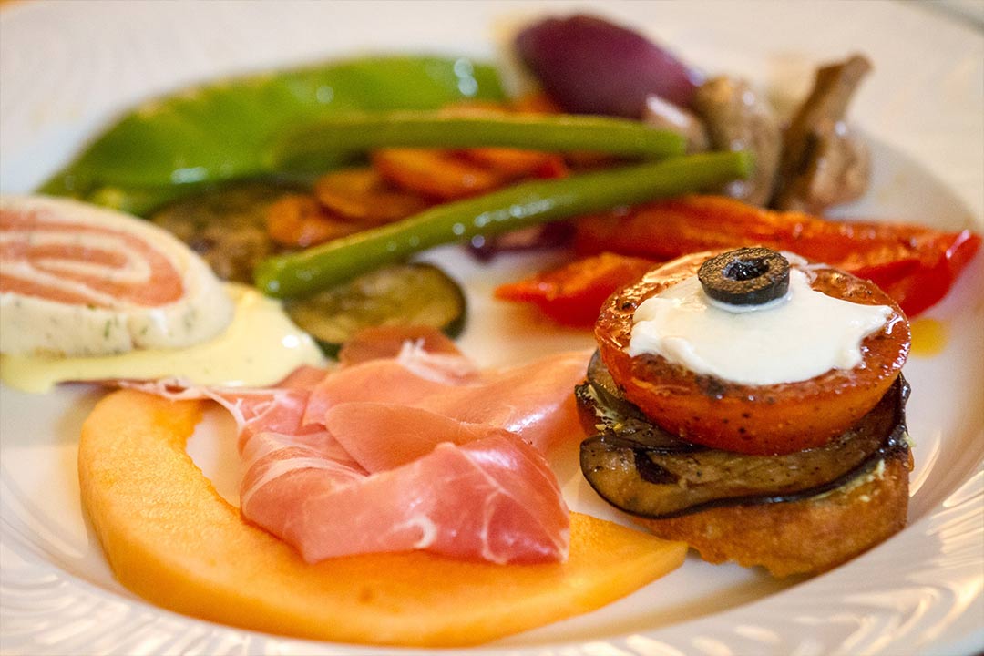 Feine Vorspeisen, Antipasto, bunte Salatteller, samtige Suppen und leckere Entrees werden direkt an die Tische serviert. Ein entspanntes Miteinander am Tisch entsteht, die leckeren Speisen werden zum Thema und regen zum Plausch an. Weiter geht es beim Hauptgang dann mit Show-Cooking am Buffet.Buffet