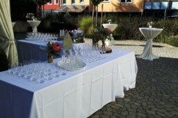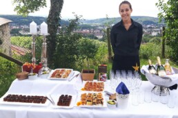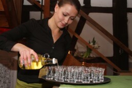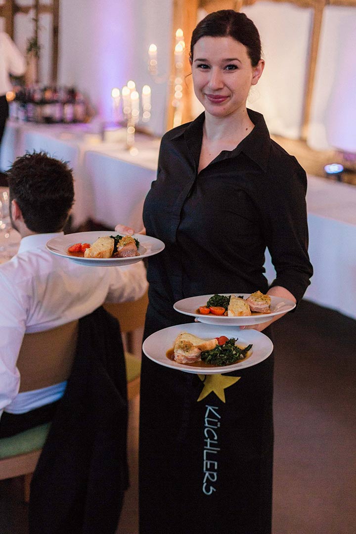 Als gelernte Hotelfachfrau schult Frau Küchler ihr eigenes Team. Unsere Restaurantleiter*innen führen das Service Team erfahren durch jede Veranstaltung. Servicekräfte sind bei uns zu jeglicher gastronomischen Veranstaltung buchbar. Wir besprechen mit Ihnen im Vorfeld Ihre Wünsche an Serviceleistungen, um unsere Mitarbeiter gewissenhaft einweisen zu können.Empfang
