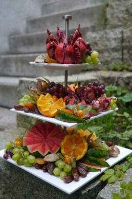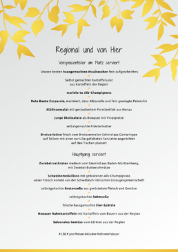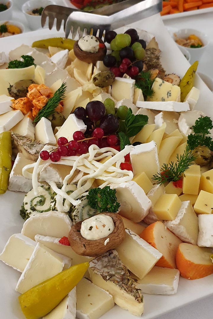 Das Menu ist selbstverständlich auch als Buffet oder als Platten am Tisch zu servieren. Hauptsache…die maßgeblichen Produkte kommen aus der Region.